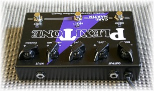 Die Bilder und die Texte dieser Website sind von mir und nur mit meiner ausdrücklichen Genehmigung anderweitig, wie z.B. bei Ebay, zu verwenden. Carl Martin ist eine dänische Firma. Den modern klingenden Hot Drive`n Boost MK II durfte ich bereits testen, jetzt gibt es einen Test der Carl Martin Version des Marshall Tons. Das Plexi Tone soll natürlich den Klang der alten Marshalls mit dem goldenen Plexi-Bedienpanel bieten. Wobei das mit dem Plexi aber so eine Sache ist. 50 oder 100 Watt ist da schon mal ein gehöriger Unterschied und mein Bluesbreaker Combo mit KT66 ist trotz Plexi z.B. auch wiederum was ganz anderes. Aber erst mal zur Ausstattung des Pedals. Von Carl Martin ist man hohe Gehäuse und integrierte Netzteile mit fest installiertem Netzkabel gewohnt. Letzteres gibt es auch beim Plexi Tone, das hohe Gehäuse aber nicht. Hier gibt es eine flache, breite Version, die mir wesentlich besser gefällt. Die Chickenhead Potiknöpfe mag ich auch lieber. Die Verarbeitung ist tadellos. Der Bypass leider nicht, denn der bietet leichte Verzerrungen, bzw. Übersprechungen aus der Zerrsektion. Da hört man im Hintergrund hinter dem cleanen Gitarrensignal ganz leise etwas bretzeln, ähnlich wie beim Boss SD-1. Vor einem zerrenden Amp ist das sicher nicht relevant, vor einem cleanen ja. Mich würde das stören. Dieses Bretzeln ist inputabhängig. Mit den Humbuckern meiner ES kommt es mehr zum Tragen als mit den Single Coils meiner Stratocaster. Mit Single Coils ist das kaum noch zu hören. Einen unabhängig von der Zerrabteilung verwendbaren Boost hat das Plexi Tone zu bieten. Zu regeln gibt es da nur eins: den Level. Der Tonregler arbeitet nur für die Zerrsektion. Bei Zugedrehtem Boost Levelregler hat man ungefähr das Bypass Signal ohne erwähnenswerte Klangverfälschung. Dreht man weiter auf erhöht sich der Pegel kontinuierlich ohne irgendwelche großen Klangänderungen bis zum Abwinken. Ein klangneutraler Boost, den man eigentlich nicht besser machen könnte, wenn er denn nicht auch das erwähnte Hintergrundbretzeln aus dem Bypass mitboosten würde. Ganz clean ist er also nicht.