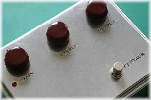 Die Bilder und die Texte dieser Website sind von mir und nur mit meiner ausdrücklichen Genehmigung anderweitig, wie z.B. bei Ebay, zu verwenden. Sagenumwoben ist nicht nur der Centaur aus der griechischen Mythologie. Auch das Pedal der kleinen Firma Klon hat so einen Status. Kaum jemand hat es mal gespielt bzw. weiß wirklich, wie es klingt. Es ist selten und teuer und wer eins bestellt, muss lange warten. Das sind, wie ich an anderer Stelle schon mal schrieb, beste Zutaten für einen Kultstatus. Wenn es dann vor einem liegt, ist man aber nicht ernüchtert. Im Gegenteil, es kommt schon sehr edel rüber, das Gerät. Ein Grund dafür ist, dass hier mal nicht das übliche Standard Hammond Kastengehäuse zum Zuge kommt. Das Klon Centaur hat ein eigenständiges, pultförmiges poliertes Gehäuse aus Alu-Druckguss, das ohne Lack daherkommt. Es ist nicht gerade klein, ungefähr doppelt so groß wie ein Standard Boss Gehäuse, aber etwas flacher als ein solches. Die drei rotbraunen Potiknöpfe sind auch keine Standardware und fallen in die Kategorie "griffig und groß". Es gibt auf dem Gehäuse keine Skala für die Potis, sie sind aber durch eine Nase der Potiknöpfe trotzdem halbwegs gut ablesbar. Die sparsame Beschriftung ist auflackiert. Alles Geschmackssache, aber ich finde das Gehäuse richtig klasse. Ältere Pedale sind auch mal in Gold und mit einer Pferdemensch-Grafik, (eben einem Zentauren) zu finden. Heute gibt es das Klon Centaur nur in der hier getesteten Ausführung. Die Technik, Bauteile und Klang sind bei allen Klon Centauren gleich. Die Ausstattung ist
